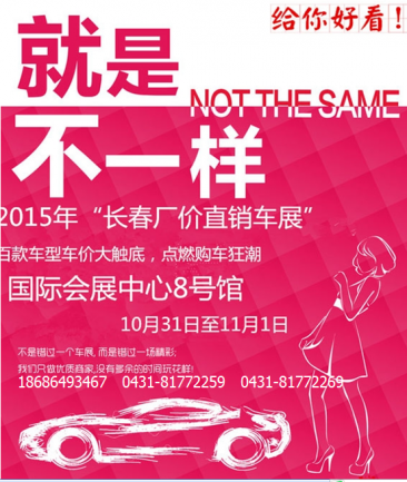 10.31-11.1長春 車展 會展中心8號館 2015長春廠價直銷車展盛大來襲!來觀展、享低價,你準(zhǔn)備好了嗎?這優(yōu)惠信息劈頭蓋臉的,讓人家還怎么做安靜的美男(女)子...10月31日、11月1日,2015長春...【查看詳情】