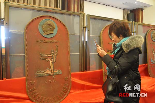 難得一見的藏品,市民們用手機記錄下來。 展廳一隅。 為紀念毛澤東誕辰123周年,12月18日上午,紅色經典巨型徽章特展在湘潭白石古玩街開幕,共展出90余枚上個世紀50年代至70年代的...【查看詳情】